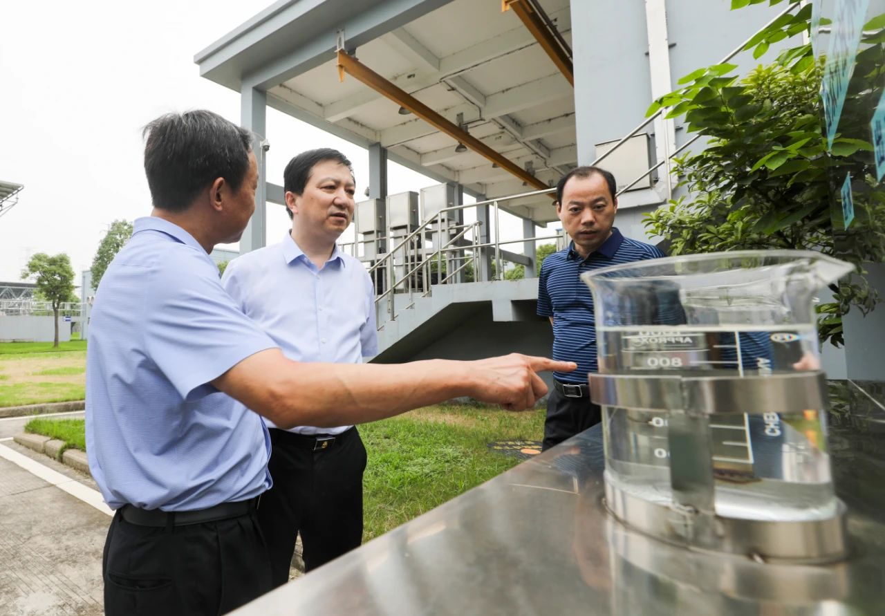 在六圩污水處理廠,夏正東實地察看了出水泵房、光伏電站等生產(chǎn)區(qū)域,詳細了解企業(yè)項目運營、污水管網(wǎng)現(xiàn)狀、廠區(qū)運行調控、綠色循環(huán)經(jīng)濟產(chǎn)業(yè)鏈等情況。