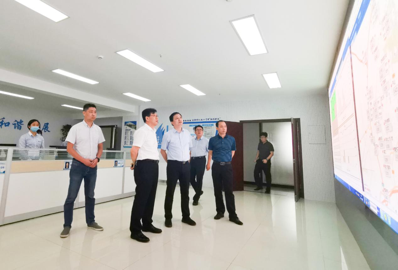 在長江水務調度中心,夏正東詳細了解了自來水生產(chǎn)調度情況、各地區(qū)水壓狀況。