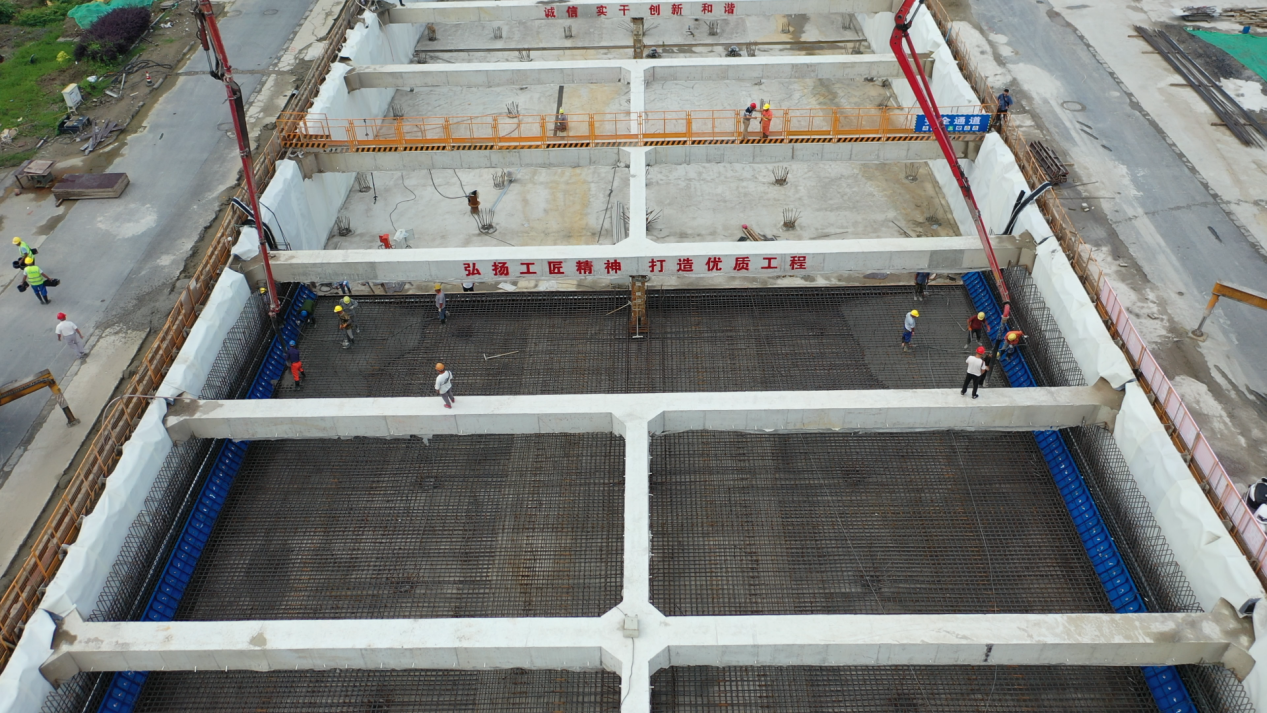 運(yùn)河南北路快速化改造一期工程(施井路-二里橋路南)項(xiàng)目擬建文昌路隧道及運(yùn)河路隧道,兩條隧道全長(zhǎng)1031米。其中,文昌路隧道貫穿市區(qū)文昌路,瀕臨古運(yùn)河,如何做好降水防水是基坑開挖后項(xiàng)目部所面臨的最大難點(diǎn)。洽逢汛期,為了確保底板順利澆筑,項(xiàng)目部一方面加大人材機(jī)的投入,設(shè)置多處降水井控制基坑地下水位,確保排水通暢;另一方面,嚴(yán)把材料質(zhì)量關(guān),將滲漏隱患止于萌芽、將安全防線筑于手中。同時(shí),在澆筑過(guò)程中,項(xiàng)目負(fù)責(zé)人和技術(shù)、安全、試驗(yàn)等相關(guān)人員全程對(duì)混凝土灌注進(jìn)行監(jiān)控把關(guān)。