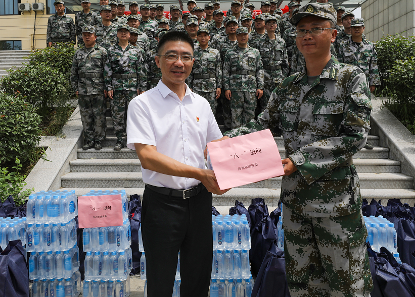 在第93個(gè)“八一”建軍節(jié)到來(lái)之際,適逢2020年揚(yáng)州市民兵應(yīng)急營(yíng)集中輪訓(xùn)備勤,7月31日上午,城控集團(tuán)黨委副書(shū)記徐飛前往揚(yáng)州市國(guó)防園民兵集訓(xùn)基地,看望慰問(wèn)參訓(xùn)基干民兵。集團(tuán)相關(guān)部室,參訓(xùn)基干民兵所在單位分管負(fù)責(zé)人參加活動(dòng)。