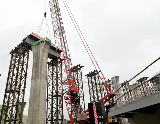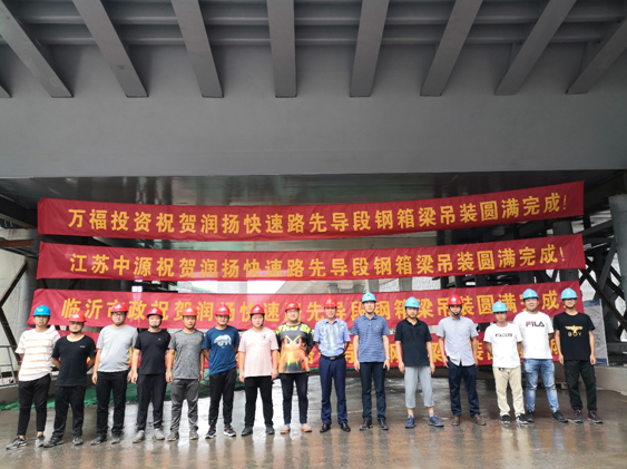 2020年5月28日 8點(diǎn)15分揚(yáng)州市目前橋梁工程中最重最長(zhǎng)的單塊鋼結(jié)構(gòu)箱梁吊裝,標(biāo)志著跨路段鋼箱梁吊裝結(jié)束。