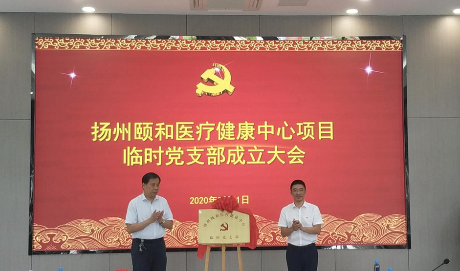 活動中,置業(yè)公司黨支部書記葛仁凱對頤和項目情況和臨時黨支部籌備情況作了簡要介紹,在現(xiàn)場全體人員的見證下,集團黨委副書記徐飛和市衛(wèi)健委副主任陳雷共同為“揚州頤和醫(yī)療健康中心項目臨時黨支部”揭牌,在場人員以熱烈的掌聲對項目臨時黨支部的成立表示祝賀。