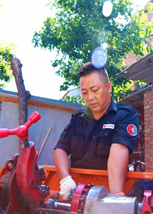 8月18日,為避開高溫天氣,管道安裝工仲飛清晨5點多準(zhǔn)時到達(dá)駐點,和伙伴們完成備料備件后,迎著朝霞趕赴揚(yáng)州老城區(qū)北講經(jīng)墩居民家中。由于完全是戶外曝曬作業(yè),他身上的工作服濕了又干,干了又濕,泛起層層白色鹽霜。