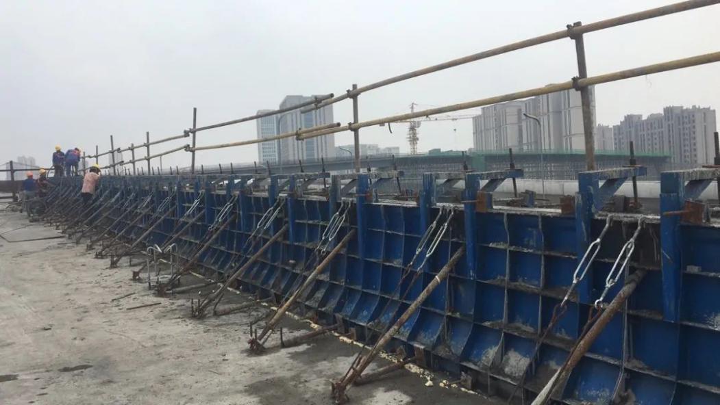 自防撞護(hù)欄施工以來(lái),項(xiàng)目部多措并舉,綜合管控現(xiàn)場(chǎng)施工安全及質(zhì)量,保證橋面系及防撞護(hù)欄施工穩(wěn)步推進(jìn)。面對(duì)防撞護(hù)欄施工圓曲線半徑較小、鋼筋預(yù)埋準(zhǔn)確度控制難度大、鋼筋線型調(diào)整難度大等難題,從測(cè)量放線、立模校正到澆筑砼,全程設(shè)專(zhuān)人盯控,嚴(yán)格“三檢”制度,堅(jiān)持“樣板引路”,抓好質(zhì)量管控。同時(shí),多次組織召開(kāi)防撞護(hù)欄“回頭看”等專(zhuān)題會(huì)議,不斷總結(jié)經(jīng)驗(yàn)、優(yōu)化施工方案,平穩(wěn)有序推進(jìn)施工進(jìn)度。