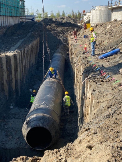 為保證施工順利進(jìn)行,施工過程中采用了多點井點降水,保證施工作業(yè)面無水狀態(tài)。在確保進(jìn)度和工期的同時,潔源公司項目部狠抓質(zhì)量控制、安全管理,對關(guān)鍵部位、關(guān)鍵工序的施工過程中全程監(jiān)管,嚴(yán)格把關(guān),在管道鋪設(shè)過程中,做到分層夯實,對回填土嚴(yán)格要求,保證了回填質(zhì)量。雖然二沉池進(jìn)水工藝管道施工,存在施工作業(yè)面小、對縫難度大、過程控制要求高等難點,但潔源公司項目部克服困難,抓好現(xiàn)場質(zhì)量檢查,對管道焊縫進(jìn)行無損探傷檢測,對回填土進(jìn)行環(huán)刀見證取樣,保證了施工質(zhì)量,最終在10月12日完成了該段管道鋪設(shè)任務(wù),為湯汪污水處理廠三期工程擴建項目早日通水打通了主動脈。