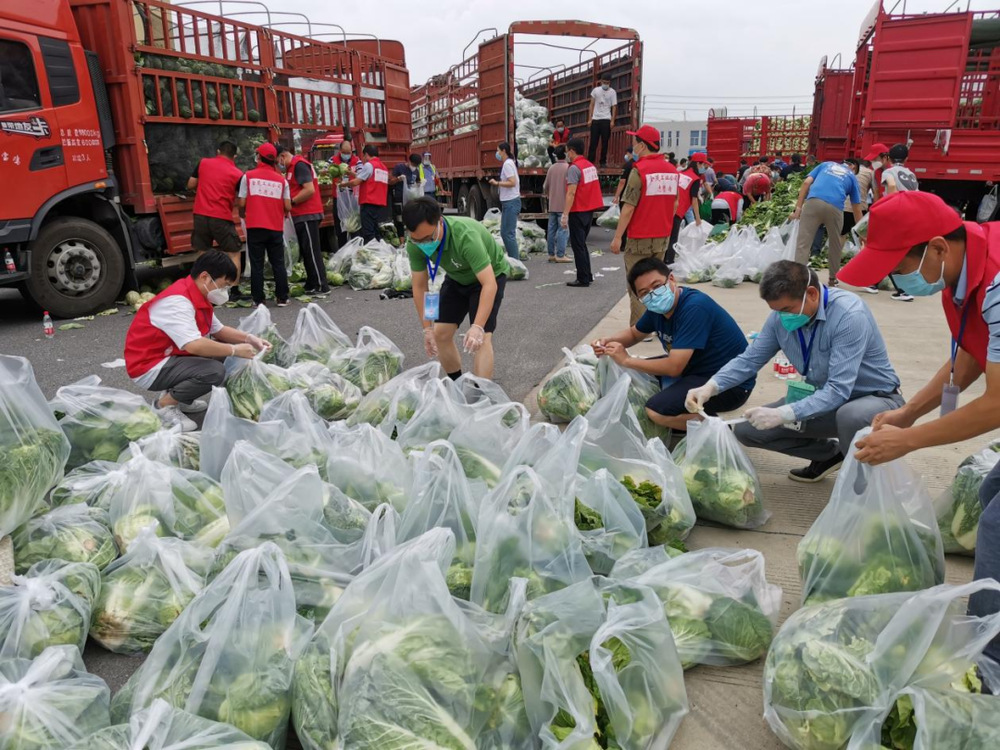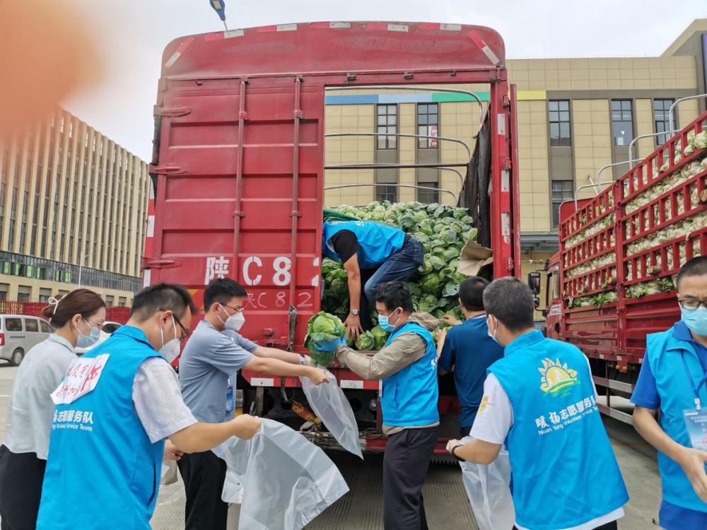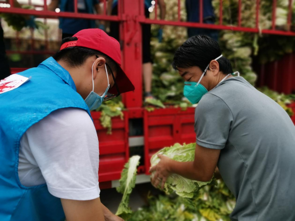 由于蔬菜數(shù)量龐大,為保障居民能夠及時拿到“愛心菜”,13:30,城控集團(tuán)又從各志愿服務(wù)小組緊急抽調(diào)50名志愿者奔赴萬噸冷鏈進(jìn)行現(xiàn)場支援。