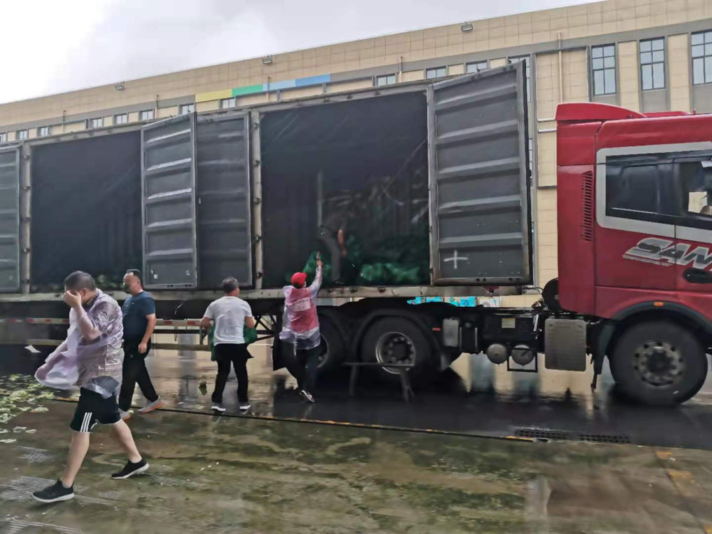 14:30,天空開始飄起雨點(diǎn),大家依舊堅(jiān)守在各自的崗位上,很快雨點(diǎn)就打濕了衣服和頭發(fā),可現(xiàn)場沒有一個人退下躲雨?!斑@車卸得差不多了,我們?nèi)ツ沁厧兔Α?,“邗江區(qū)轉(zhuǎn)運(yùn)蔬菜的車來了,需要10個人裝車”,“我去”“我也去”,現(xiàn)場只有時不時這樣的聲音傳來。