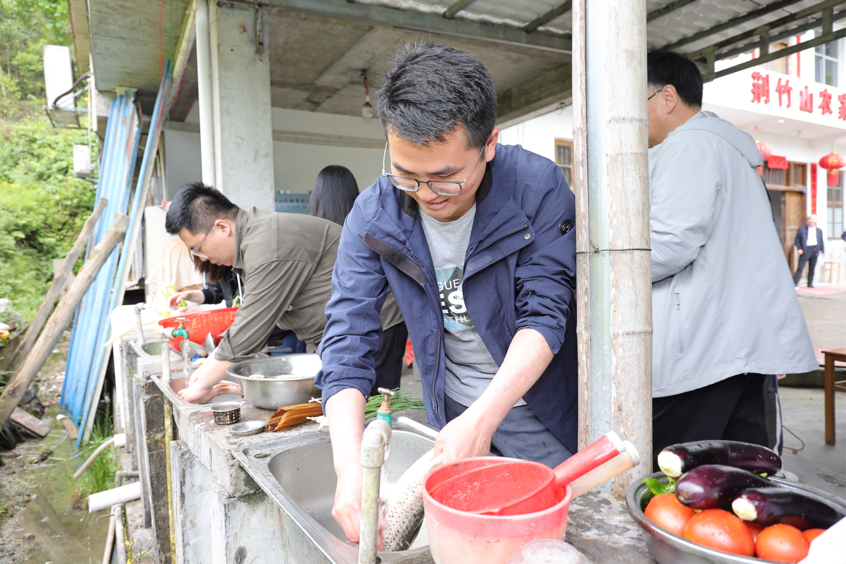 在紅色拓展環(huán)節(jié),全體學(xué)員前往毛澤東宣布“三大紀(jì)律”的荊竹山開(kāi)展鐵紀(jì)教育、穿越峽谷、搶救傷員、自做紅軍餐等團(tuán)隊(duì)挑戰(zhàn)項(xiàng)目。制作紅軍餐時(shí),學(xué)員們利用準(zhǔn)備好的食材,大顯身手,個(gè)個(gè)化身做飯能手。劈柴、生火、洗菜、擇菜、切菜、擺盤,大家分工合作,每一個(gè)環(huán)節(jié)都配合默契,每一個(gè)步驟都井然有序。用著大鍋灶,燒著柴火飯,一道道色香味俱全的佳肴被端上桌,得到了大家的一致好評(píng)。通過(guò)多個(gè)團(tuán)隊(duì)合作項(xiàng)目,既增強(qiáng)了學(xué)員們的團(tuán)隊(duì)協(xié)作能力,又展現(xiàn)了學(xué)員們朝氣蓬勃的精神風(fēng)貌和銳意進(jìn)取的昂揚(yáng)斗志。