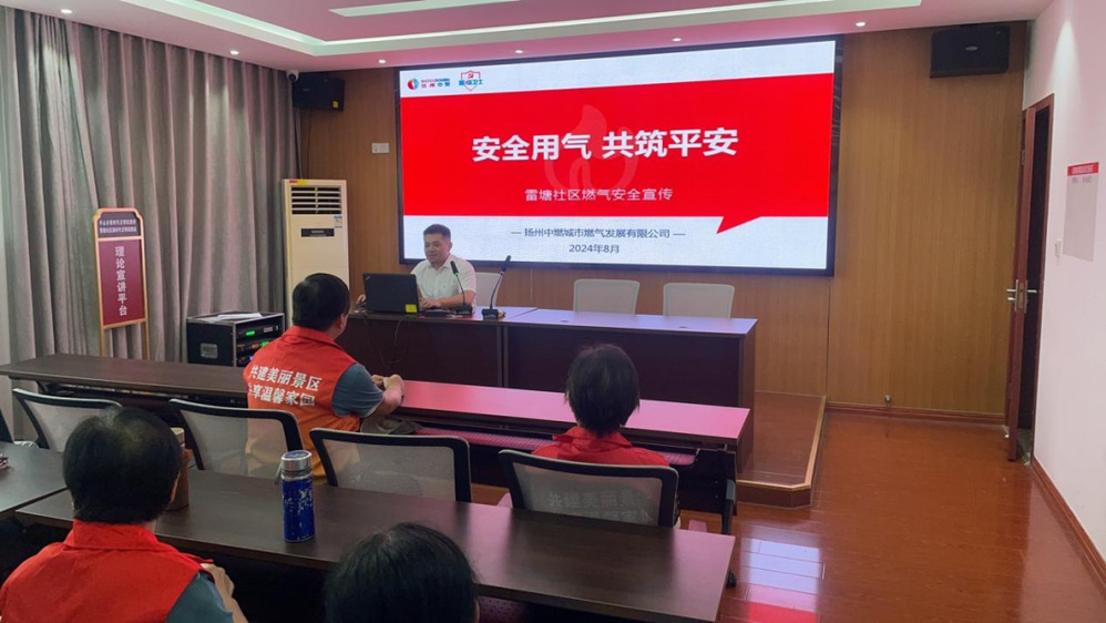 在社區(qū)會(huì)議室,揚(yáng)州中燃“藍(lán)焰”志愿者還為即將使用天然氣的莊臺(tái)居民,帶去了一場(chǎng)燃?xì)獍踩褂弥黝}講座,對(duì)燃?xì)獍踩WR(shí)、夏季安全用氣注意事項(xiàng)、燃?xì)馐鹿试蚍治龅冗M(jìn)行了詳細(xì)的講解。