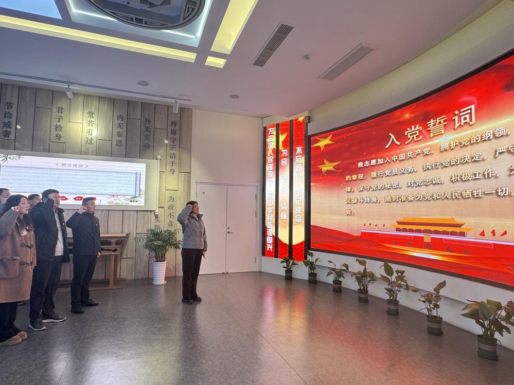 在工作人員的講解下,一件件觸目驚心的反腐案例,一聲聲痛心疾首的懊惱懺悔,讓在場的每一位黨員干部的內(nèi)心受到了強烈的震撼。參觀結(jié)束后,黨員們在館內(nèi)莊嚴(yán)重溫入黨誓詞,再憶入黨初心。