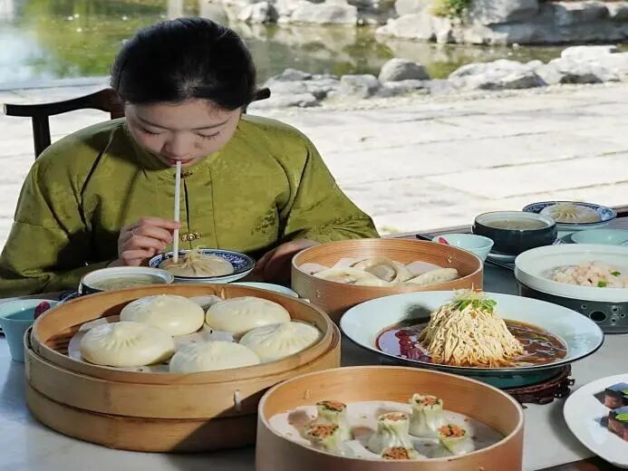 長樂客?!扒镯嵲绮柩偶敝噩F(xiàn)清代鹽商“早茶會客”的雅趣,蟹黃湯包、翡翠燒賣等淮揚名點搭配古箏琵琶演奏,讓游客在舌尖與耳畔同步感受非遺魅力。隔壁的芍藥園子書場內(nèi),評彈藝人傾情演繹《珍珠塔》《雙金錠》等經(jīng)典曲目,場場爆滿的盛況印證著傳統(tǒng)曲藝的當(dāng)代生命力。長樂鹽商宴更是海納八方客,單日最高接待量突破200人次,沉浸式鹽商家宴成為美食愛好者的全新打卡地標(biāo)。