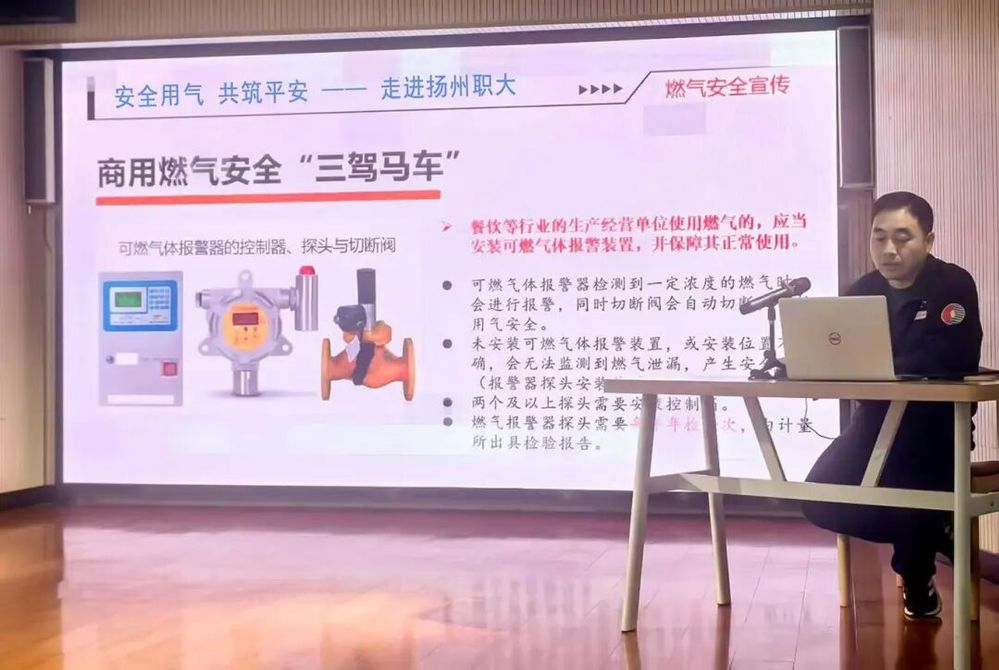 為進(jìn)一步強(qiáng)化校園燃?xì)獍踩芾恚袑?shí)提升后勤服務(wù)人員的安全意識(shí)與應(yīng)急處置能力,近日,揚(yáng)州中燃公司聯(lián)合揚(yáng)州職業(yè)技術(shù)大學(xué)組織開展燃?xì)獍踩珜n}培訓(xùn)。揚(yáng)州職業(yè)技術(shù)大學(xué)后勤保障處相關(guān)負(fù)責(zé)人與60余名一線工作人員參加培訓(xùn)。
