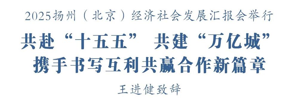 初冬北京,層林盡染。11月13日,2025揚(yáng)州(北京)經(jīng)濟(jì)社會(huì)發(fā)展匯報(bào)會(huì)在京舉行,全面展示揚(yáng)州開(kāi)放發(fā)展最新成果,深度對(duì)接北京優(yōu)質(zhì)資源與創(chuàng)新力量,以?shī)^進(jìn)之姿共赴“十五五”新征程,聚力推動(dòng)揚(yáng)州高質(zhì)量邁入“萬(wàn)億之城”,攜手書(shū)寫(xiě)互利共贏合作新篇章。市委書(shū)記王進(jìn)健出席并致辭。