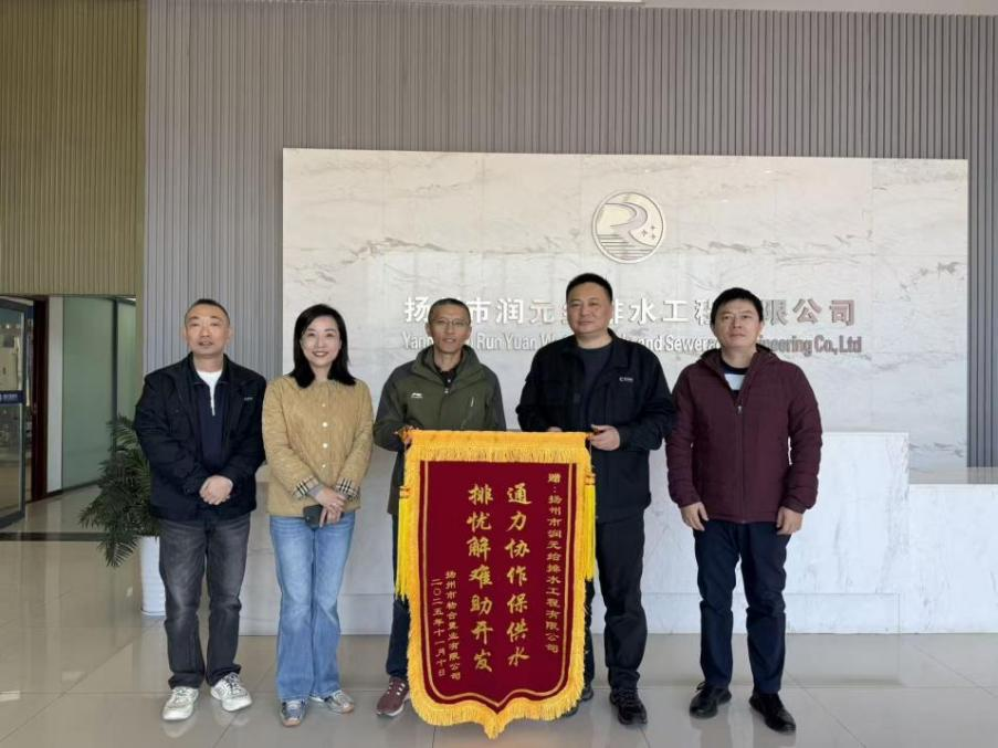 11月19日,揚州市物合置業(yè)有限公司將一面繡有“通力協(xié)作保供水,排憂解難助開發(fā)”的錦旗送到長江水務潤元公司工作人員手中,對潤元公司高效、優(yōu)質、便捷、暖心的服務表示衷心感謝和認可。