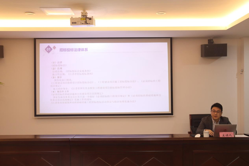 培訓(xùn)中,馬遠(yuǎn)圍繞《中華人民共和國招標(biāo)投標(biāo)法》《江蘇省招標(biāo)投標(biāo)條例》等相關(guān)法律要求,通過“政策解讀+案例分析+互動答疑”的形式,闡釋了招投標(biāo)管理的法律邊界與操作規(guī)范,剖析了招投標(biāo)管理的典型法律風(fēng)險,并針對招投標(biāo)過程中易出現(xiàn)的程序違規(guī)、串標(biāo)風(fēng)險、合同簽訂爭議等實(shí)際問題,提出了切實(shí)可行的防范建議。